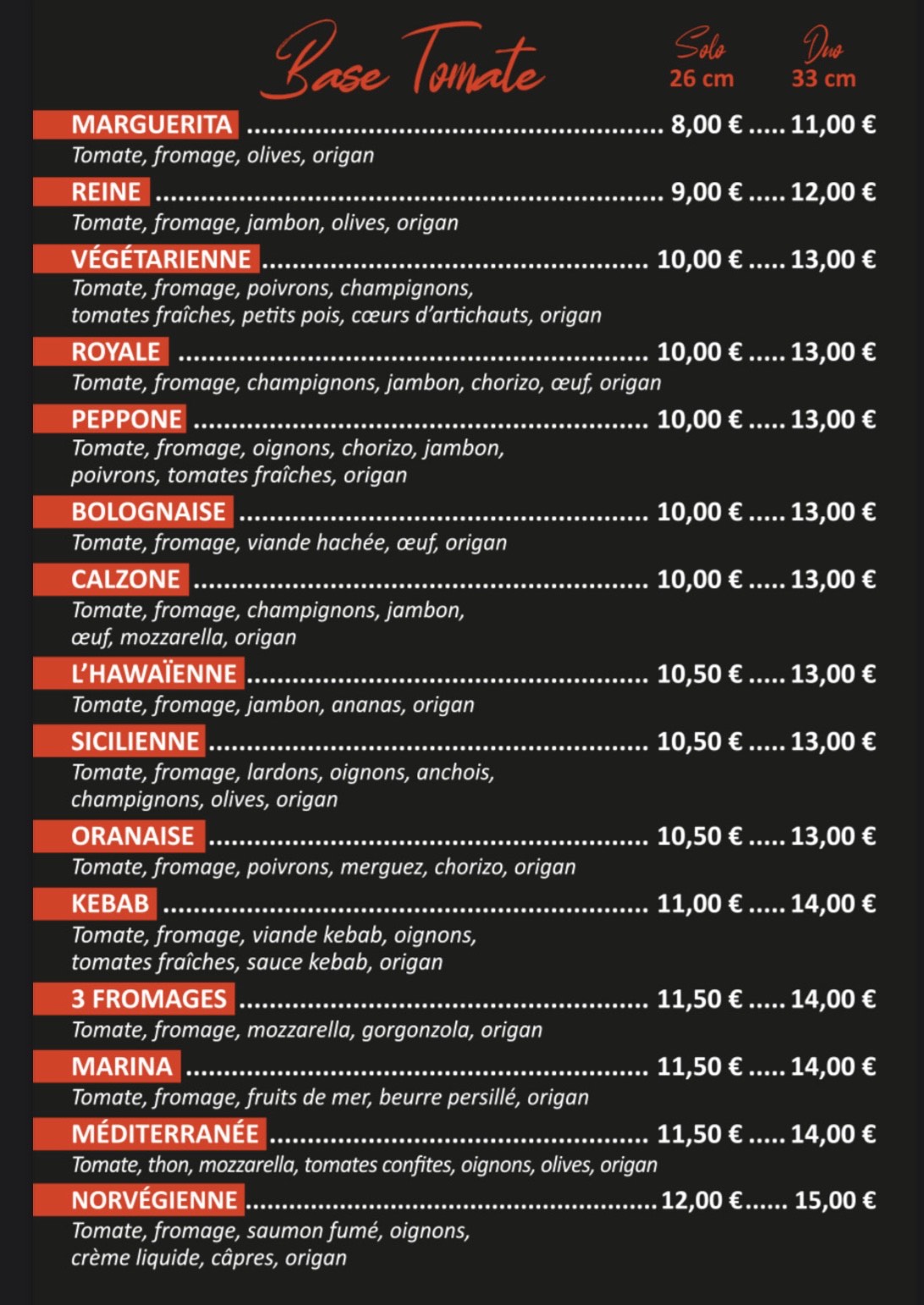 Les spécialités que je vous propose sont préparées soigneusement pour être aussi belles que bonnes, car la pizza se déguste avant tout avec plaisir ! Vous les dégusterez avec les yeux avant que vos papilles se régalent !